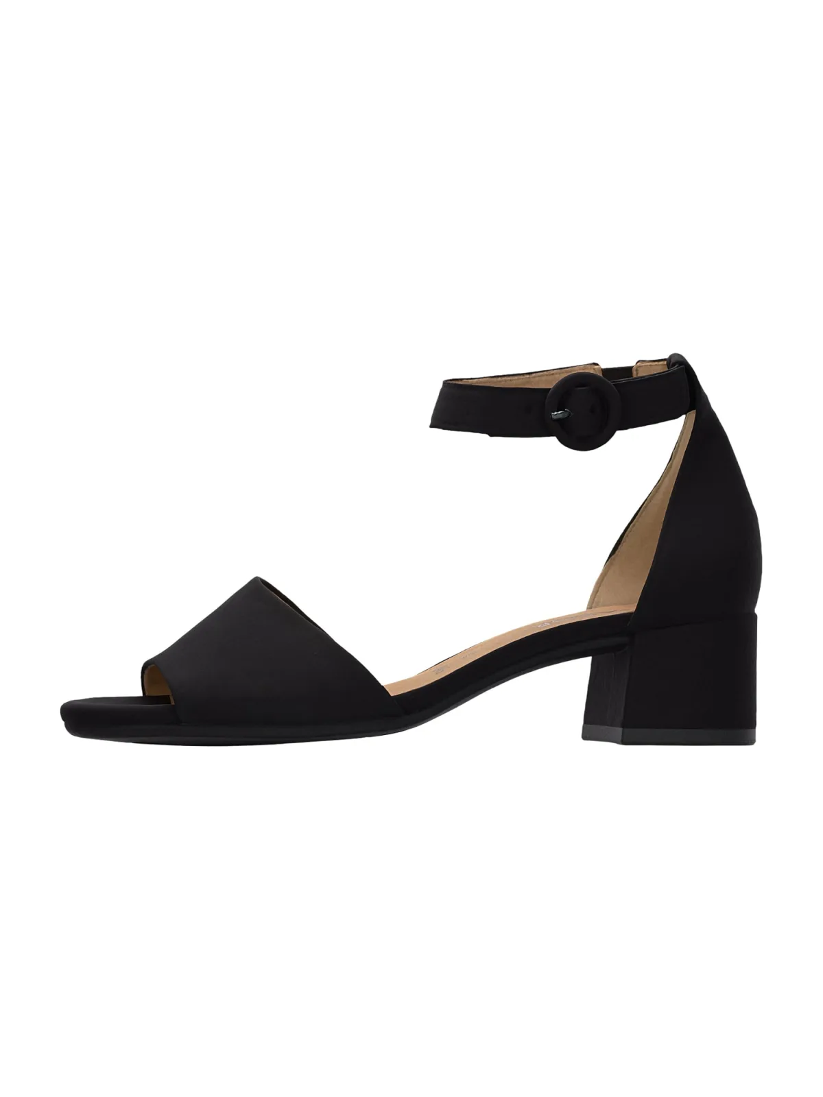 Design: Enkelbanden, Verstelbare riemen, Versterkte hak; Type sluiting: Riemsluiting; Type hak: Blokhak; Materiaal: Leer; Motief: Effen; Materiaal: Suède; Schoenneus: Open toe; Extra's: Buigzame grip, Flexibele zool; Hakhoogte: Middelhoge hak (3-7 cm)