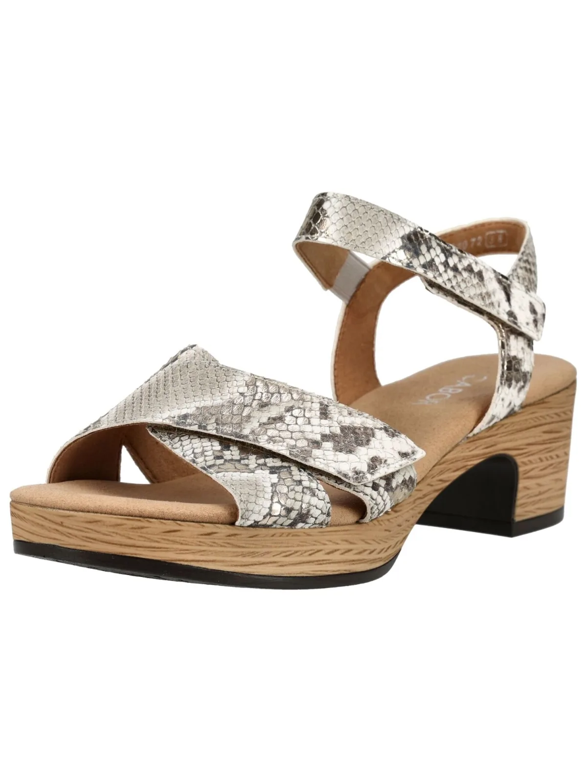 Design: Gevoerd, Profielzolen; Type sluiting: Velcro sluiting; Type hak: Blokhak; Materiaal: Leer; Motief: Dierenprint; Schoenneus: Open toe; Extra's: Gladde stof, Reptile look; Hakhoogte: Middelhoge hak (3-7 cm); Pasvorm van de schoenen: Breed