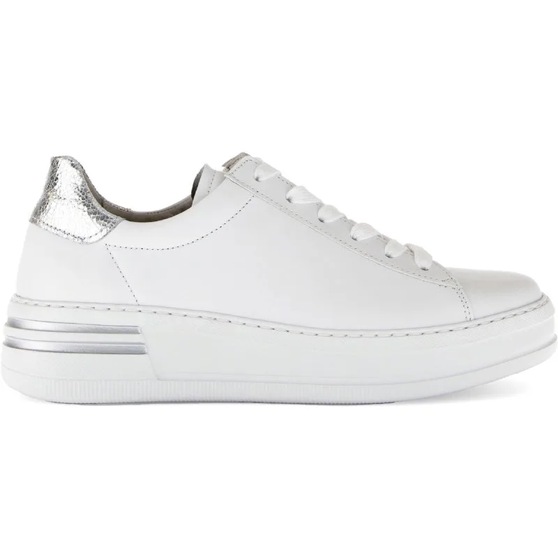 Ontdek de perfecte balans tussen stijl en comfort met de GABOR 395 sneakers. Deze lage sneakers met ronde neus zijn ideaal voor een ontspannen lentewandeling of een zomerse picknick in het park. De leren binnenkant zorgt voor een luxe gevoel, terwijl de rubberen zool je elke stap comfortabel maakt. Combineer ze moeiteloos met een luchtige zomerjurk of een casual jeans voor een frisse, modieuze look. De vetersluiting geeft je de perfecte pasvorm, zodat je zorgeloos kunt genieten van je dag. Deze witte sneakers zijn een veelzijdige aanvulling op je garderobe en passen perfect bij het zonnige seizoen.