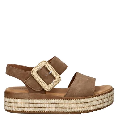 Met deze Gabor suède dames sandaal met plateauzool ben je klaar voor zonnige dagen. De sandaal heeft een warme bruine kleur en een bohemian uitstraling door de raffia plateauzool. Het zachte suède vormt zich soepel naar je voet en samen met de leren binnenzijde zorgt dit voor prettig draagcomfort, ook als het warm is. Dankzij de Gabor Best Fitting-technologie is er extra ruimte bij de bal van de voet, wat fijn is als je iets meer breedte nodig hebt.Comfort en details voor elke dag Bovenkant gemaakt van zacht suède dat soepel om de voet valt Leren voering en binnenzool voor een ademend en fris gevoel Gevoerd leren voetbed dat bij elke stap demping geeft Plateauzool met raffia-look voor een zomerse, boho uitstraling Rubberen loopzool voor grip op verschillende ondergronden Verstelbare gesp sluiting zodat de sandaal goed aan te passen is G-wijdte met Gabor Best Fitting voor extra comfort bij de voorvoet Ronde neusvorm voor een zachte, vrouwelijke lookZomerse sandaal voor dagelijkse outfitsDeze bruine sandaal past goed bij luchtige jurken, linnen broeken en je favoriete jeans. De plateauzool geeft net wat extra hoogte, terwijl je toch stabiel loopt, ideaal voor een dagje stad, terras of vakantie.Gabor als vertrouwde keuzeGabor staat bekend om schoenen met aandacht voor pasvorm en draagcomfort. Dit model is in Europa (Slowakije) gemaakt en combineert zorgvuldige afwerking met materialen die aangenaam aanvoelen aan je voeten.Een sandaal die je de hele zomer door kunt dragen, van ochtend tot avond.