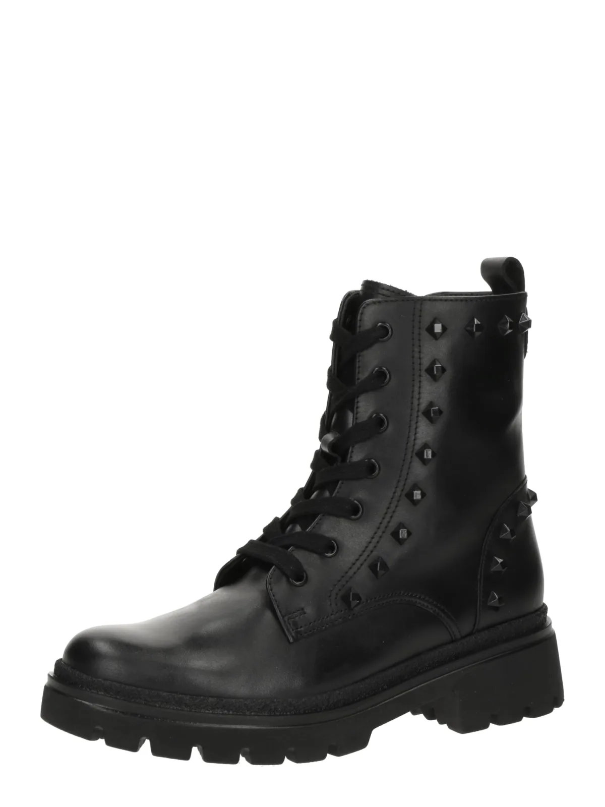 Design: Ritszakken aan de zijkant, Vetering met 7 gaten, Profielzolen, Versterkte hak, Hielband; Type sluiting: Snoersluiting; Type hak: Blokhak; Materiaal: Leer; Motief: Effen; Materiaal: Glad leer; Schoenneus: Ronde neus; Extra's: Studs, Stevige stof, Flexibele zool, Metalen oogjes; Voering: Warm gevoerd; Hakhoogte: Middelhoge hak (3-7 cm)