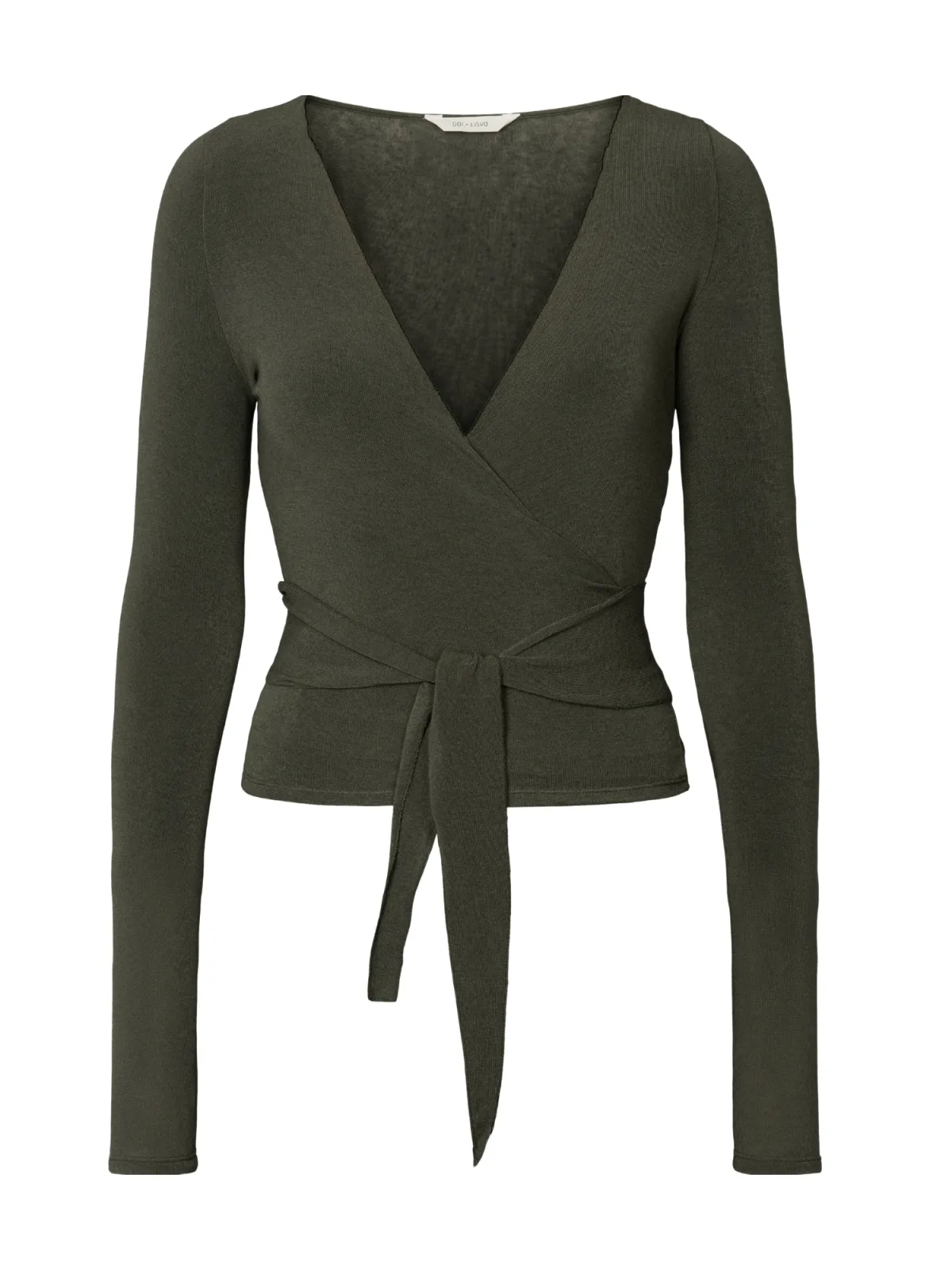 Materiaal: Jersey; Halstype: V-hals; Motief: Effen; Details: Wikkel design; Pasvorm: Slanke pasvorm; Armlengte: Lange mouw; Lengte: Korte pasvorm