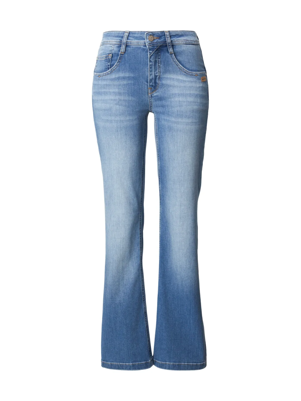 Design: Gevoerde zoom/rand, Ritssluiting, 5-pocket-style; Type sluiting: Knoopsluiting; Materiaal: Denim; Motief: Effen; Extra's: Contrasterende naden, Label patch/label flag, Vaste grip, Riemlussen; Wassing: Light washed; Lengte: Lang/maxi; Pasvorm: Flared; Taillehoogte: Mid waist