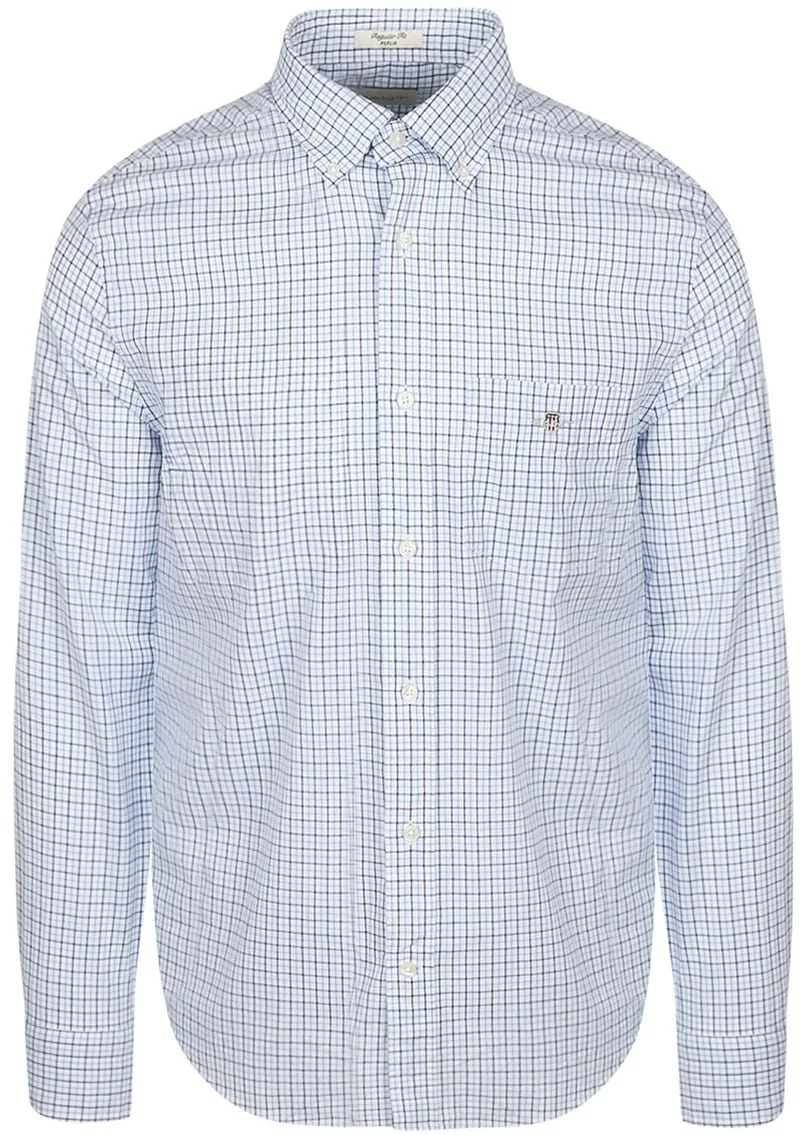 Gant Casual Overhemd Poplin Ruit Blauw