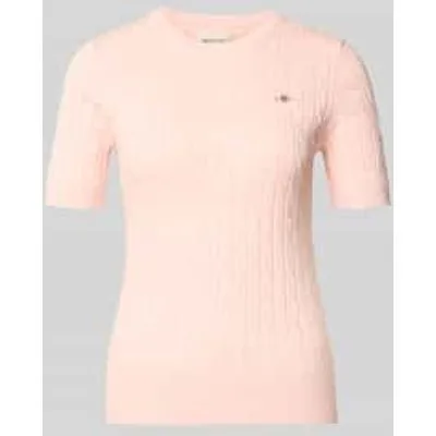 Dames gebreid shirt van Gant;Katoenmix met stretch;Slim Fit;Kabelpatroon;Labelstitching;Ronde hals;Ruglengte bij maat S: 57 cm;Mouwlengte bij maat S: 24 cm