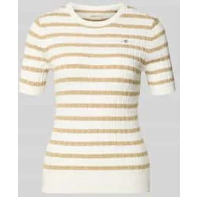Dames gebreid shirt van Gant;Katoenmix met stretch;Slim Fit;Riblook;Ronde hals;Labelstitching;Ruglengte bij maat S: 57 cm;Mouwlengte bij maat S: 23 cm