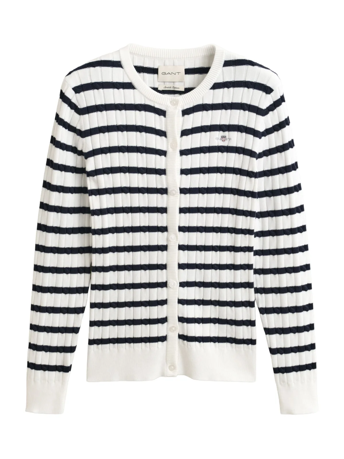 Design: Geribbelde kraag, Rechte zoom, Knop placket, Geribd ceintuurtje; Type sluiting: Knoopsluiting; Materiaal: Knitwear; Halstype: Ronde hals; Motief: Gestreept; Extra's: Label borduurwerk, Met textuur, Voelt zacht aan; Pasvorm: Normale pasvorm; Armlengte: Lange mouw; Lengte: Normale lengte