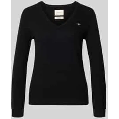Gebreide damespullover van Gant;Lamswolmix;Regular fit;V-hals;Labelstitching;Ruglengte bij maat S: 60 cm;Mouwlengte bij maat S: 59 cm