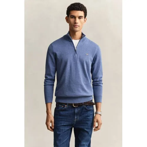 Voor een verzorgde, casual look is deze GANT heren trui met halve rits een tijdloze basis in je garderobe. De trui heeft een regular fit, waardoor hij comfortabel valt zonder strak te zitten. Dankzij de opstaande kraag met halve rits bepaal je eenvoudig zelf de halsopening, of je nu gaat voor een meer gesloten of juist een wat openere uitstraling. De melée structuur in de stof geeft een rustig, maar toch levendig effect.Verzorgde basic met praktische details Regular fit voor een ontspannen pasvorm die geschikt is voor dagelijks gebruik Halve rits aan de voorkant voor eenvoudig aan- en uittrekken en variatie in de hals Opstaande kraag voor een nette, licht sportieve look en extra warmte rond de hals Gemaakt van 100% katoen, wat zacht aanvoelt op de huid en prettig draagt Langemouwmodel zonder zakken voor een strak en rustig silhouet Melée dessin dat subtiel diepte geeft aan de kleur en goed combineert met effen itemsGeschikt voor werk, weekend en onderwegDeze GANT trui is geschikt voor zowel informele momenten als meer verzorgde gelegenheden en kan direct op de huid of over een T-shirt of overhemd worden gedragen. De halve rits maakt de trui handig voor wisselende temperaturen, bijvoorbeeld op kantoor of tijdens een reisdag.GANT: moderne klassiekers met aandacht voor detailGANT staat bekend om kleding met een duidelijke, preppy signatuur en een betrouwbare kwaliteit. De ontwerpen zijn geïnspireerd op American sportswear, met een focus op draagbaarheid en een verzorgde uitstraling. Zo haal je met deze trui een veelzijdig kledingstuk in huis dat geschikt is voor regelmatig gebruik.Een toegankelijke, veelzijdige trui die je eenvoudig aanpast aan elke dag.