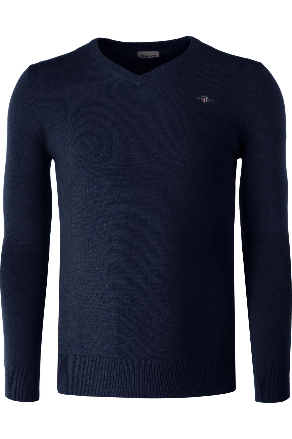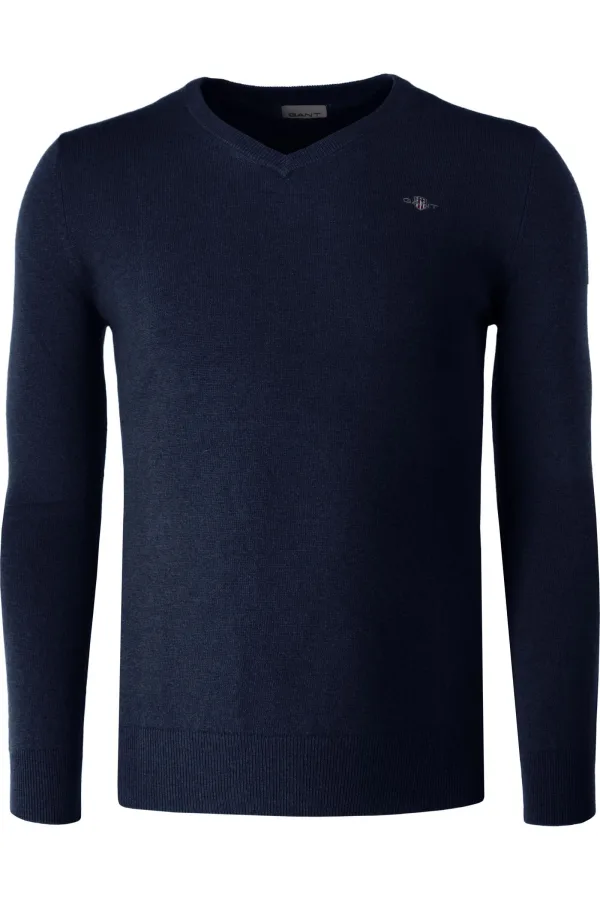 GANT Gebreide trui V-halsmarine, Effen Prijzen