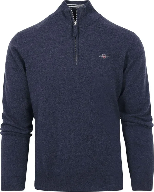 Gant Halfzip Wol Trui Logo Melange Navy Prijzen