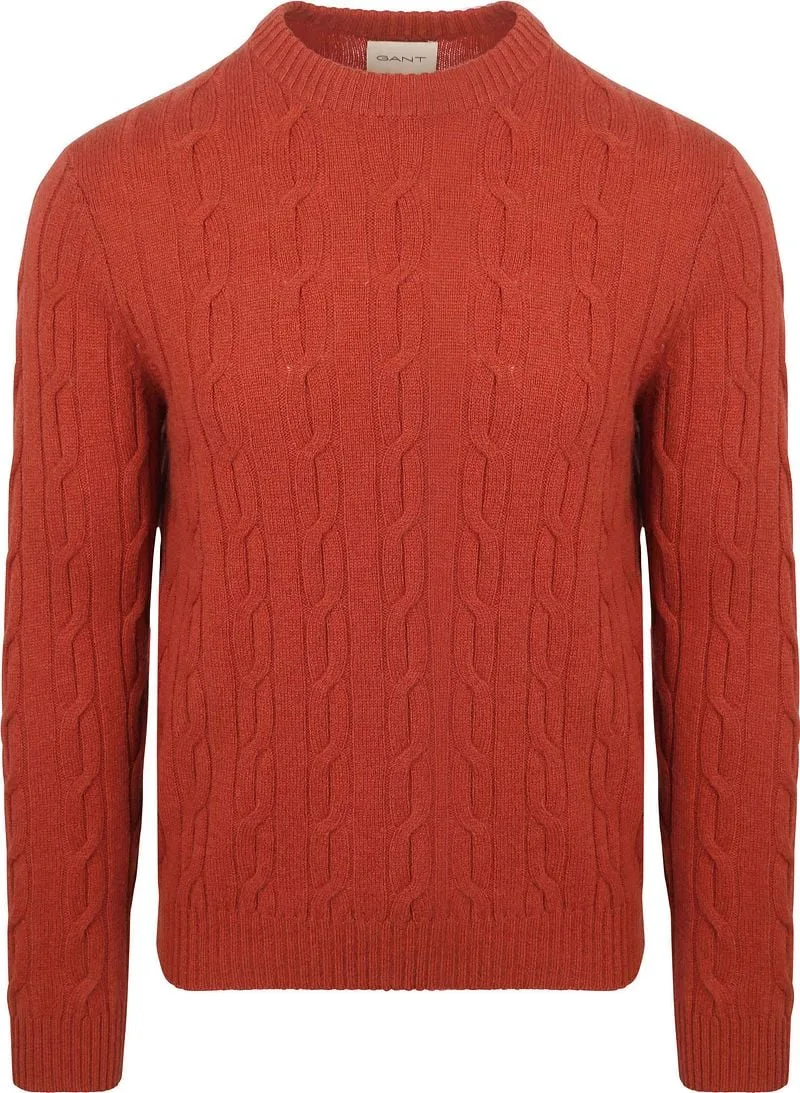 Gant Pullover Crewneck Lambswool Cable Modern Rust
