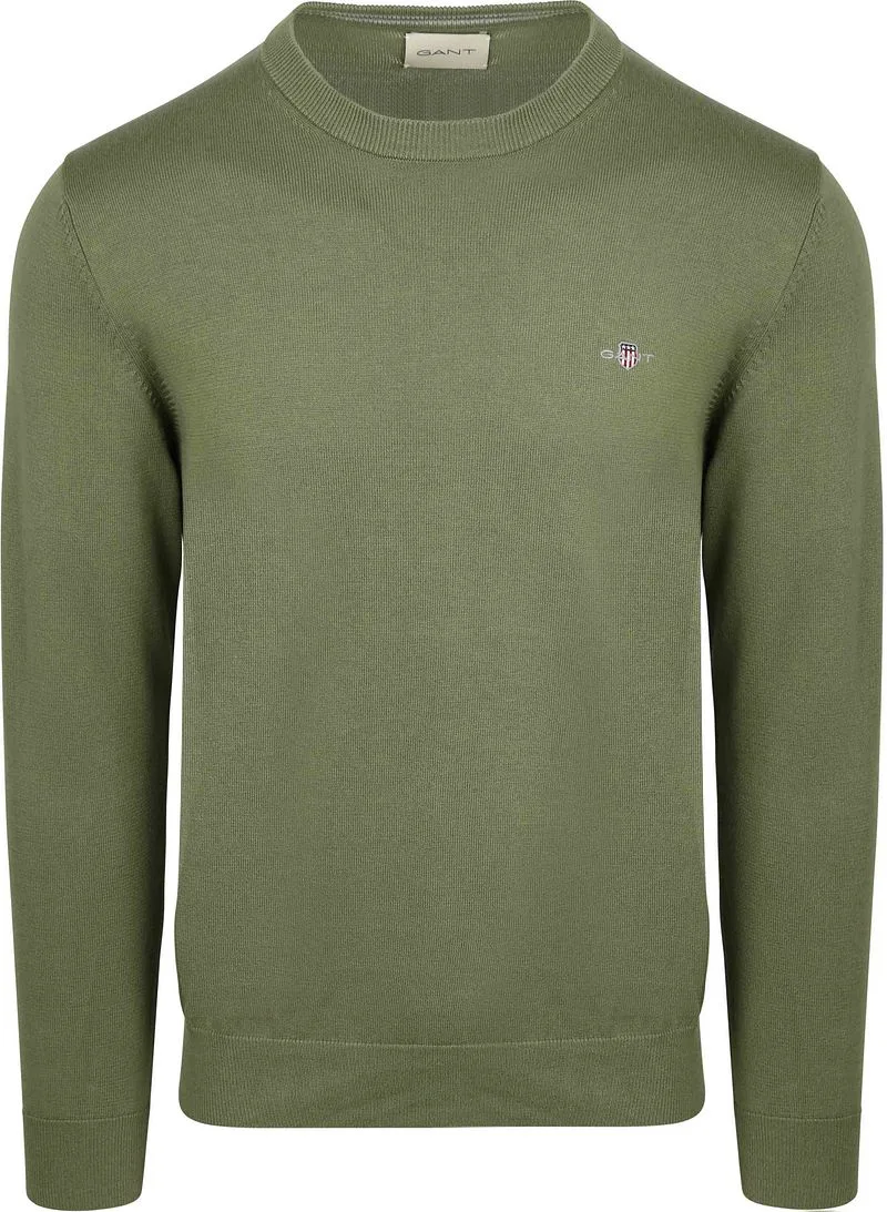 Gant Pullover heren Groen Katoenen trui met ronde hals 8030561/379