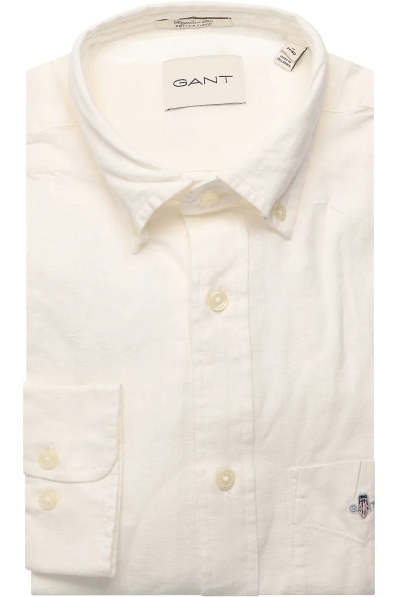 GANT Regular Fit Linnen Overhemd wit, Effen Prijzen