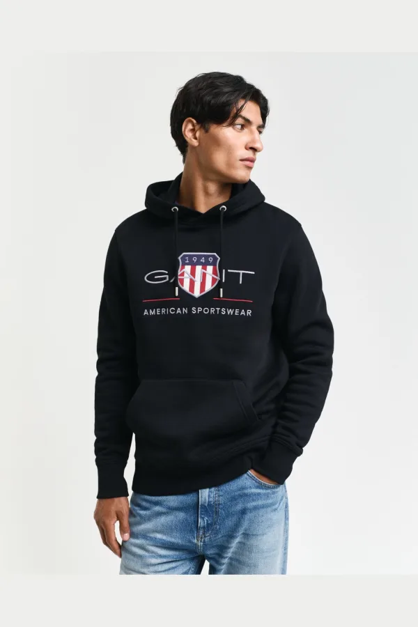 GANT Shield Hooded Sweatshirt zwart, Effen