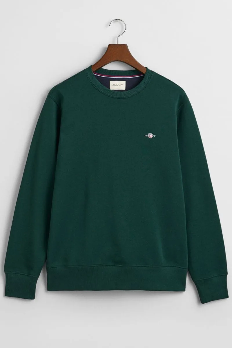 GANT Shield Regular Fit Sweatshirt ronde hals groen, Effen