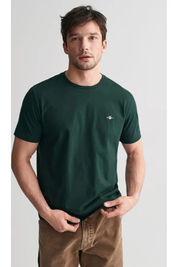 GANT Shield T-Shirt ronde hals donkergroen, Effen Prijzen