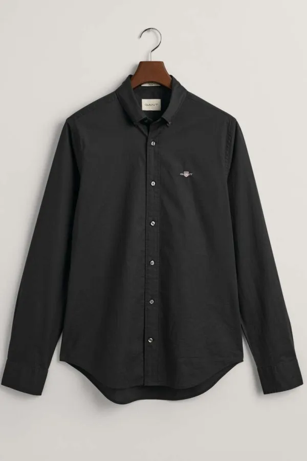 GANT Slim Fit Overhemd zwart, Effen Prijzen