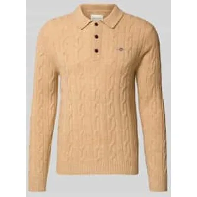 Herenshirt met lange mouwen van Gant;Zuivere wol;Slim fit;Model 'Cable';tricotlook;Gestikt logo;Polokraag;Knoopsluiting;Ruglengte bij maat M: 68 cm;Mouwlengte bij maat M: 68 cm