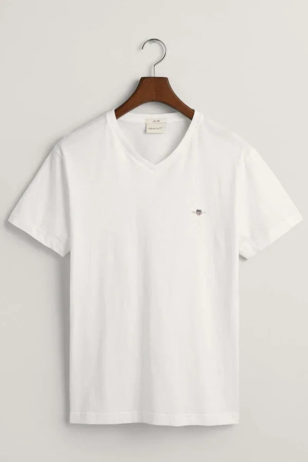 - Bij bol.com kun je Gant Shield T-shirt Met Korte Mouwen En V-hals Wit M Man kopen voor slechts €46,48 , dat is 33% goedkoper dan bij ABOUT YOU (€68,95).