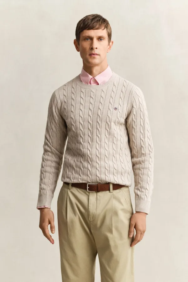 Lange mouw (normaal), 100% Katoen, ronde hals, Zonder borstzak, Cable Knit, 40 graden