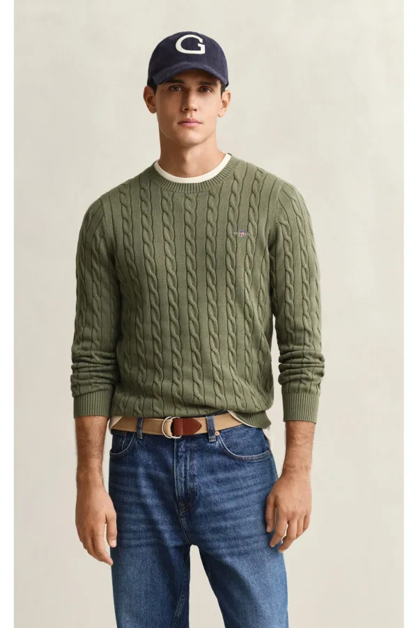 GANT Trui ronde halsgroen, Cable knit Prijzen