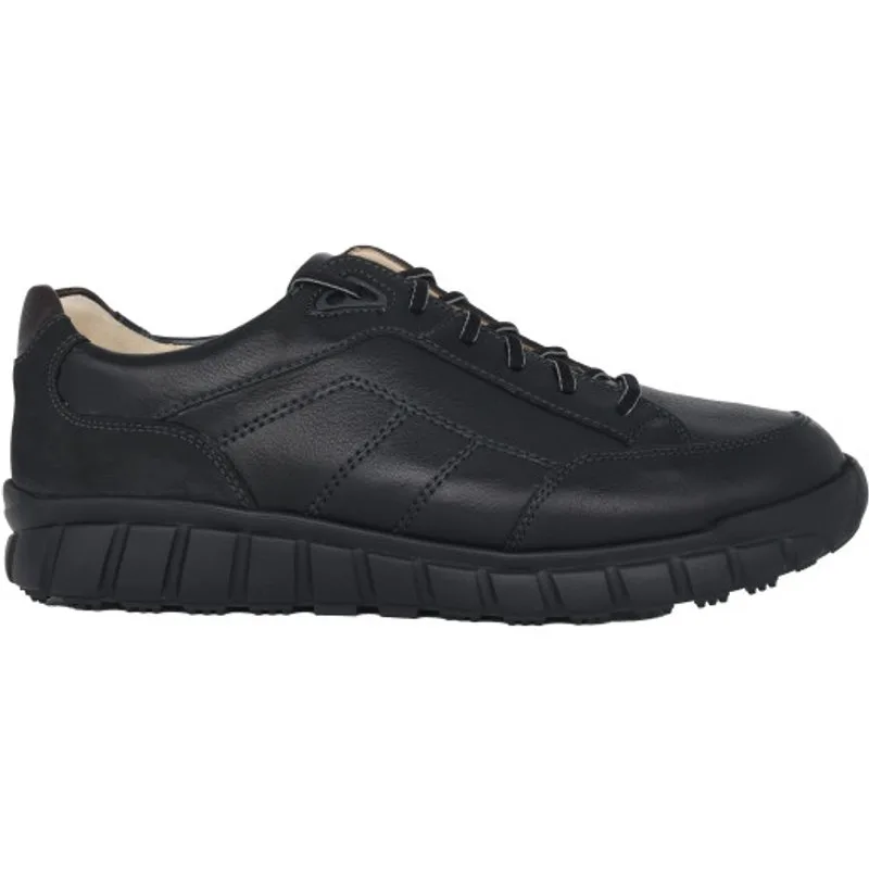 Herensneaker, wijde pasvorm (H). Uitneembaar voetbed. EVO met zijn unieke Light-Stride-technologie. Door het ongelooflijk soepele afrollen van hiel tot tenen kun je langer lopen met minder inspanning. Met zijn antislipzool biedt EVO een stevige grip op elke ondergrond, zelfs onder moeilijke omstandigheden. De veters zorgen voor de beste afstelling.