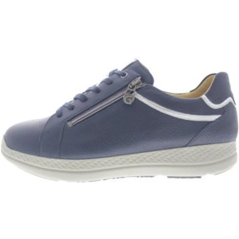 Ganter dames casual sneaker, model KarlaLuise uit de Sensitiv lijn, met een EXTRA verstijfde zool ter ondersteuning bij een hallux rigidus/limitus en artrose. Functionele rits voor het aan- en uittrek gemak. Donkerblauw leer. Plantaardig gelooide binnenvoering van zacht velours zonder voelbare stiknaden en volledig gepolsterd. Stevige afwikkelzool, zeer geschikt ter ondersteuning bij diabetische, neuropatische en reumatische klachten. Wijdte K-L, geschikt voor de brede tot zeer brede voet. Uitneembaar voetbed. Goed te dragen als dagelijkse schoen. Dit model heeft een extra uitneembare opvulzool dat van een wijdte K breedtemaat overgaat naar een wijdte L voor meer comfort. Hakhoogte 44mm. Hielheffing 18mm.