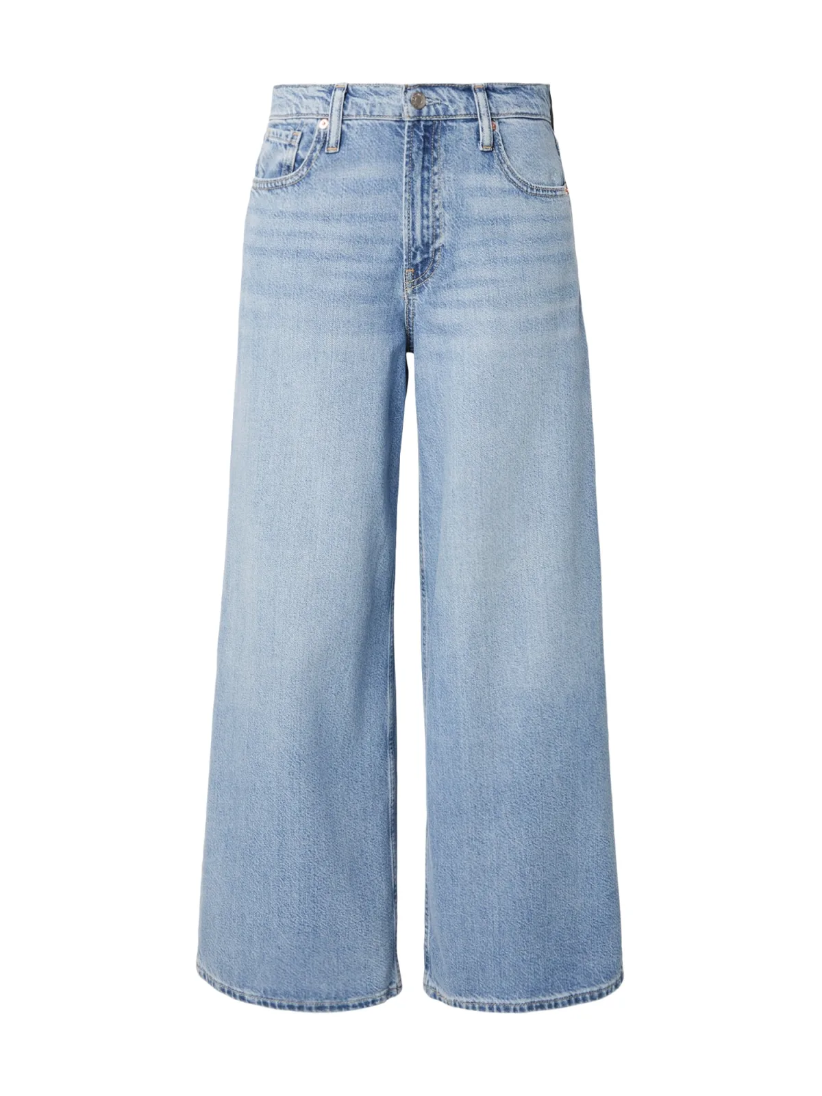 Design: Gevoerde zoom/rand, Ritssluiting, 5-pocket-style; Type sluiting: Ritssluiting; Materiaal: Denim; Motief: Effen; Extra's: Studs, Contrasterende naden; Wassing: Light washed; Lengte: Lang/maxi; Pasvorm: Wide leg; Taillehoogte: Mid waist