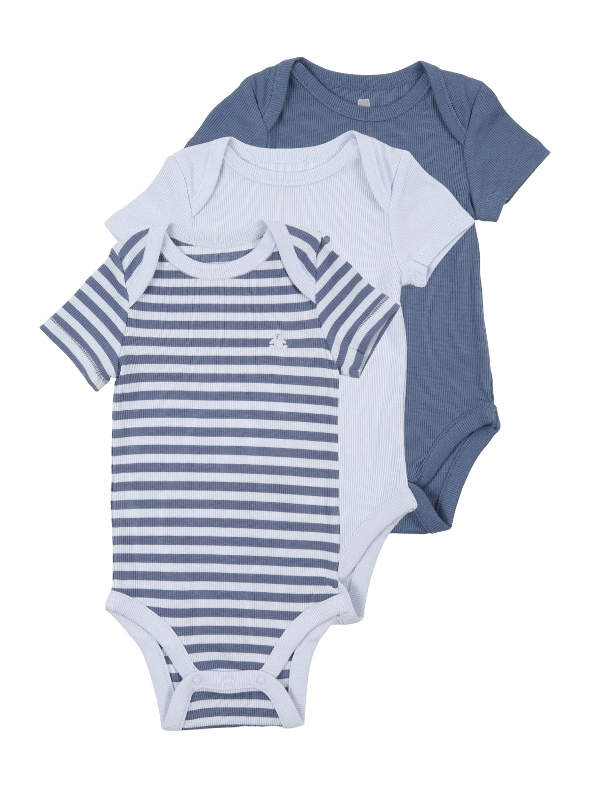 Type sluiting: Drukknoop; Materiaal: Jersey; Halstype: Ronde hals; Motief: Gestreept; Extra's: All-over patroon, Met textuur, Voelt zacht aan; Aantal: 3 Pack