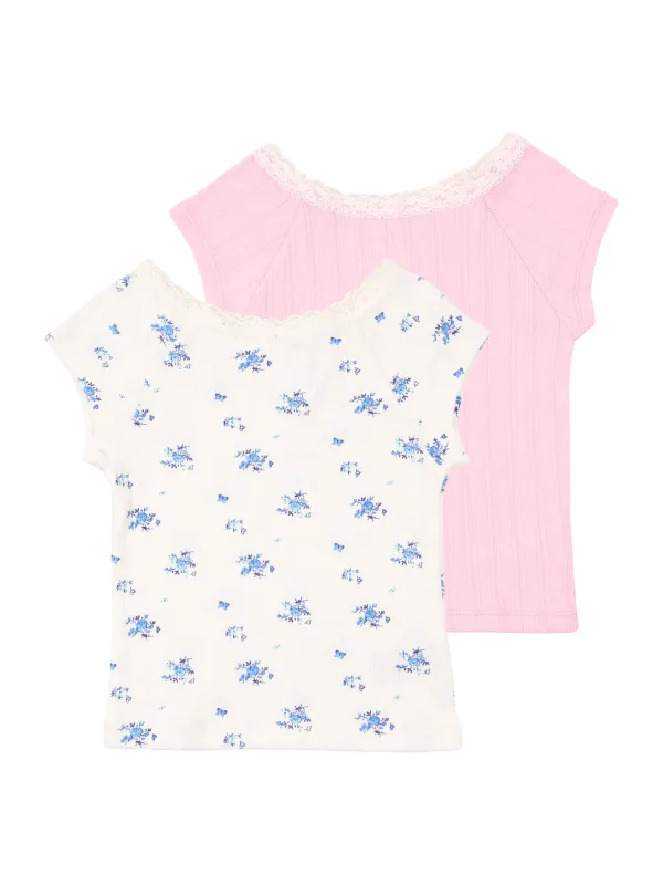 Design: Gevoerde zoom/rand, Rechte zoom; Materiaal: Jersey; Halstype: Ronde hals; Motief: Bloemenprint; Details: Kant; Extra's: All-over patroon, Voelt zacht aan; Pasvorm: Normale pasvorm; Aantal: 2 Pack; Armlengte: Kwartmouw; Lengte: Normale lengte