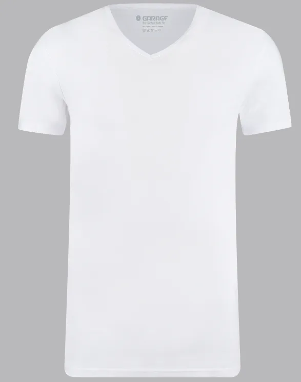 Garage 0222- Bio-Cotton Bodyfit 2-pack T-shirt V-hals korte mouw wit...