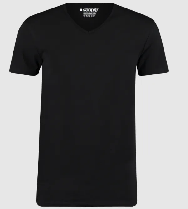 Garage 0222- Bio-Cotton Bodyfit 2-pack T-shirt V-hals korte mouw zwart...
