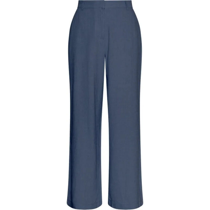 MSCH Copenhagen wide leg highwaist broek met linnen blauw