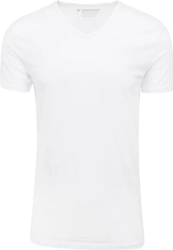 - Bij bol.com kun je Garage 202 - Bodyfit T-shirt V-hals korte mouw wit S 95% katoen 5% elastan kopen voor slechts €13,82 , dat is 23% goedkoper dan bij Suitableshop (€17,95).