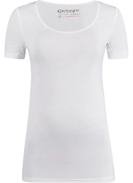 - Bij bol.com kun je Garage 701 - Dames Bodyfit T-shirt ronde hals korte mouw wit L 95% katoen 5% elastan kopen voor slechts €17,95