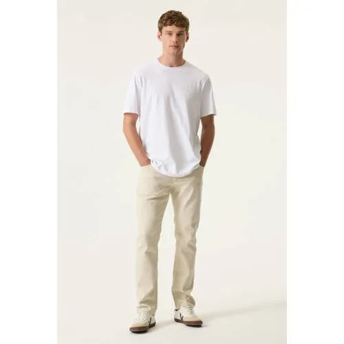 De Garcia 611 Russo tapered jeans is een moderne basis voor elke herengarderobe. Deze jeans in de kleur oatmeal heeft een zachte beige toon die makkelijk combineert met T-shirts, truien en overhemden. Dankzij de tapered fit valt de broek wat ruimer op het bovenbeen en smaller richting de enkel, wat zorgt voor een eigentijdse look met voldoende bewegingsvrijheid.Tapered pasvorm met dagelijks comfort Tapered fit: iets wijder op het bovenbeen en toelopend naar beneden voor een moderne, aansluitende uitstraling. Kleur oatmeal: een neutrale, beige kleur die eenvoudig te combineren is met zowel lichte als donkere tinten. 5-pocket model: twee achterzakken, twee steekzakken en een muntzakje voor de vertrouwde jeanslook. Rits- en knoopsluiting: klassieke sluiting die stevig en praktisch is in dagelijks gebruik. Gemaakt van 98% katoen en 2% elastaan: voelt stevig aan, maar biedt ook lichte stretch voor extra comfort bij bewegen en zitten.Geschikt voor werk, weekend en alles ertusseninDeze Garcia 611 Russo jeans past bij veel gelegenheden. In combinatie met een net overhemd is de broek geschikt voor een casual werkdag, met een hoodie of sweater creëer je een relaxte look voor het weekend. De taps toelopende pijp maakt het model goed te dragen met zowel sneakers als nette schoenen.Garcia, geïnspireerd op denimGarcia staat bekend om eigentijdse denimcollecties met aandacht voor pasvorm en draaggemak. De jeans zijn ontworpen voor dagelijks gebruik, met betrouwbare materialen en een consistente maatvoering. Zo weet je precies wat je in huis haalt en draagt je favoriete model seizoen na seizoen prettig.Een veelzijdige tapered jeans die moeiteloos meebeweegt met jouw dag.