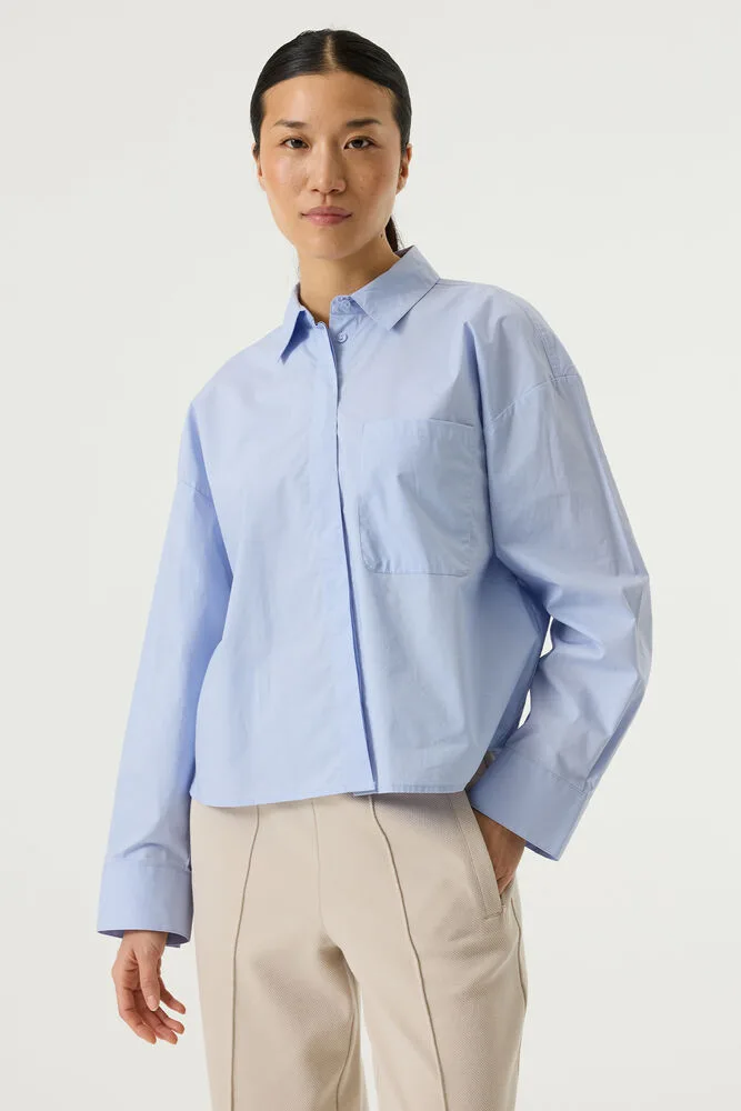 Blouse met borstzakje. Deze blouse heeft een kraagje, lange mouwen, een knoopsluiting en een regular fit. Dit item is gemaakt van 100% katoen. Better Cotton is een initiatief dat zich wereldwijd inzet voor betere omstandigheden in de katoenindustrie.