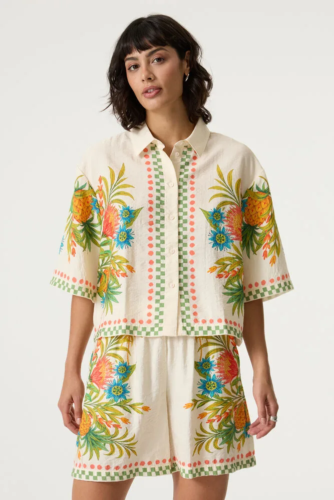 Blouse met allover print. Deze blouse heeft een kraagje, korte mouwen en een regular fit. Dit item is gemaakt van 80% viscose en 20% polyamide. Dit GARCIA kledingstuk is gemaakt met LENZING™ ECOVERO™-vezels.