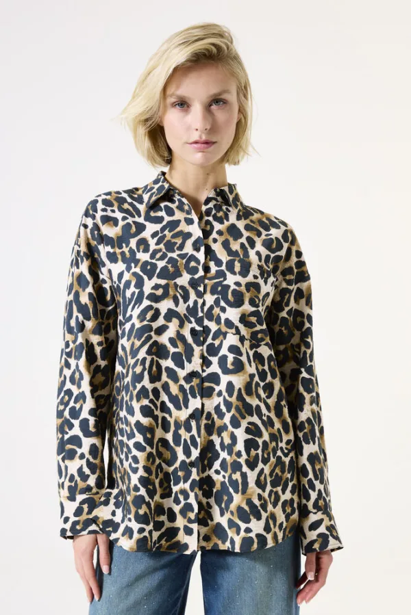 Luipaardprint overhemd met knoopsluiting. Dit overhemd heeft een klassieke kraag, lange mouwen en een regular fit. Dit item is gemaakt van 88% viscose en 12% polyamide, wat zorgt voor een comfortabele en ademende stof met een crinkle effect. Het opvallende allover leopardpatroon maakt dit shirt een statement piece in elke garderobe. Dit GARCIA kledingstuk is gemaakt met LENZING™ ECOVERO™-vezels.
