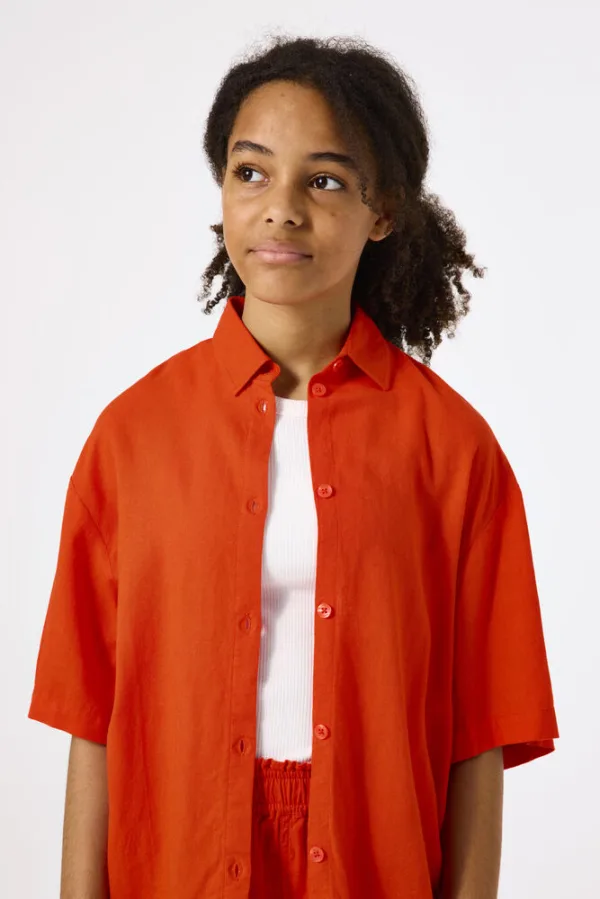 Deze blouse van Garcia is uitgevoerd in een rode kleur en speciaal ontworpen voor meisjes. Het heeft korte mouwen en een klassieke kraag. Gemaakt van een mix van viscose en linnen voor een comfortabele fit.