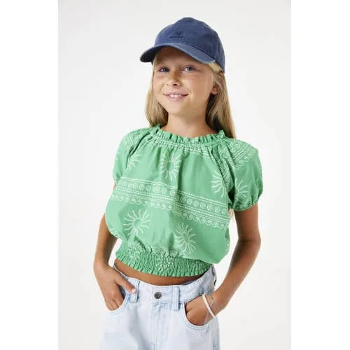 Deze top voor meisjes van Garcia is gemaakt van katoen. Het model heeft een boothals en korte mouwen. Met smockwerk, pofmouwen en elastische boorden biedt de top een speelse uitstraling.