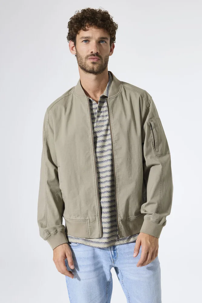 Bomberjack van geweven ripstop. Dit jack heeft een ronde hals, lange mouwen, een ritssluiting en een relaxed fit. Dit item is gemaakt van 97% katoen en 3% elastaan. Better Cotton is een initiatief dat zich wereldwijd inzet voor betere omstandigheden in de katoenindustrie.