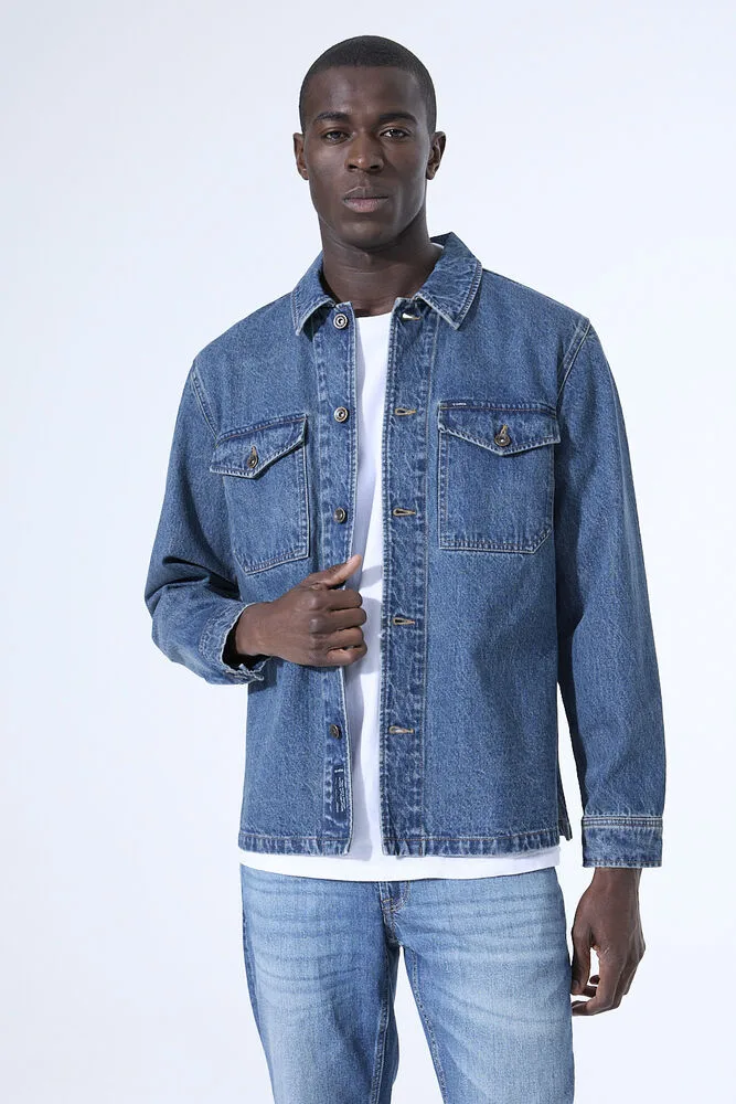 Denim overshirt met borstzakken. Deze overshirt heeft een kraagje, lange mouwen, een knoopsluitingen een regular fit. Dit item is gemaakt van 100% katoen.