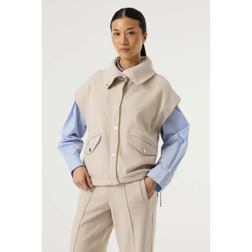 Til je dagelijkse outfits net een stapje hoger met dit Garcia dames gilet ecru. De korte, mouwloze blazer in een zachte ecru tint geeft direct structuur aan je look, zonder zwaar of formeel te ogen. De openvallende hals en het subtiel getailleerde model zorgen voor een vrouwelijk silhouet dat je makkelijk combineert met je favoriete basics.Verfijnde details voor elke dag Kort gilet met openvallende hals voor een moderne, luchtige look Getailleerde pasvorm die je middel accentueert Mouwloos ontwerp, ideaal om te layeren over T-shirt, top of blouse Praktische drukknoopsluiting aan de voorkant Tunnelkoord in de taille om de wijdte naar wens aan te passen Zakken voor, handig voor kleine essentials Effen ecru kleur, makkelijk te combineren met denim, zwart of pastel Zachte, soepele stof met katoen en elastaan voor een comfortabel gevoelStyling voor het tussenseizoenPerfect voor de lente en frisse zomerdagen. Draag het gilet open over een basic T-shirt met een rechte jeans voor een casual look, of sluit de drukknoop en trek het tunnelkoord aan boven een pantalon voor een meer aangeklede outfit.Garcia, vertrouwd in everyday fashionGarcia staat bekend om toegankelijke mode met een ontspannen, Europese uitstraling. De collecties zijn ontworpen voor dagelijks gebruik, met aandacht voor pasvorm en details, zodat jij je de hele dag comfortabel en zelfverzekerd voelt.Een veelzijdig gilet dat je garderobe rustig maar stijlvol compleet maakt.