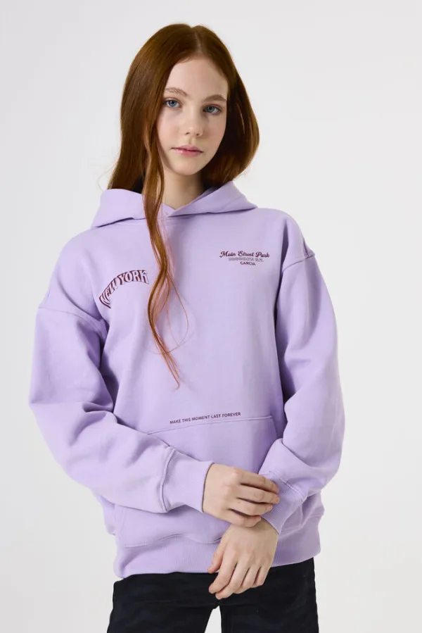 Kinderhoodie van Garcia;Puur katoen;Los model;Capuchon;Labelprint;Buidelzak;Ribboorden
