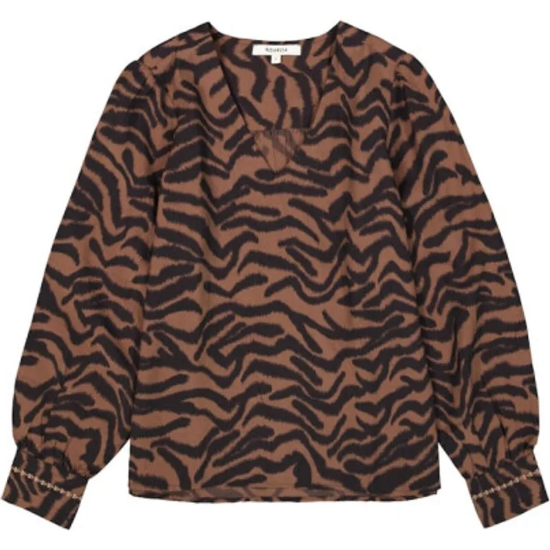 Dress to impress met deze stijlvolle bruin dessin kleurige top van Garcia Woman. De perfecte toevoeging aan jouw voorjaarsgarderobe! Gemaakt van 100% viscose en daarmee heerlijk licht en comfortabel om te dragen. Deze top met lange mouwen is ideaal voor de wat frissere lentedagen. Het dessin geeft een speelse touch aan het geheel en maakt het een echte eyecatcher. Combineer het met een jeans voor een casual look of draag het op een rok voor een meer geklede outfit. Deze top is een must-have voor elke modieuze dame. Bestel nu en maak jouw outfit compleet!