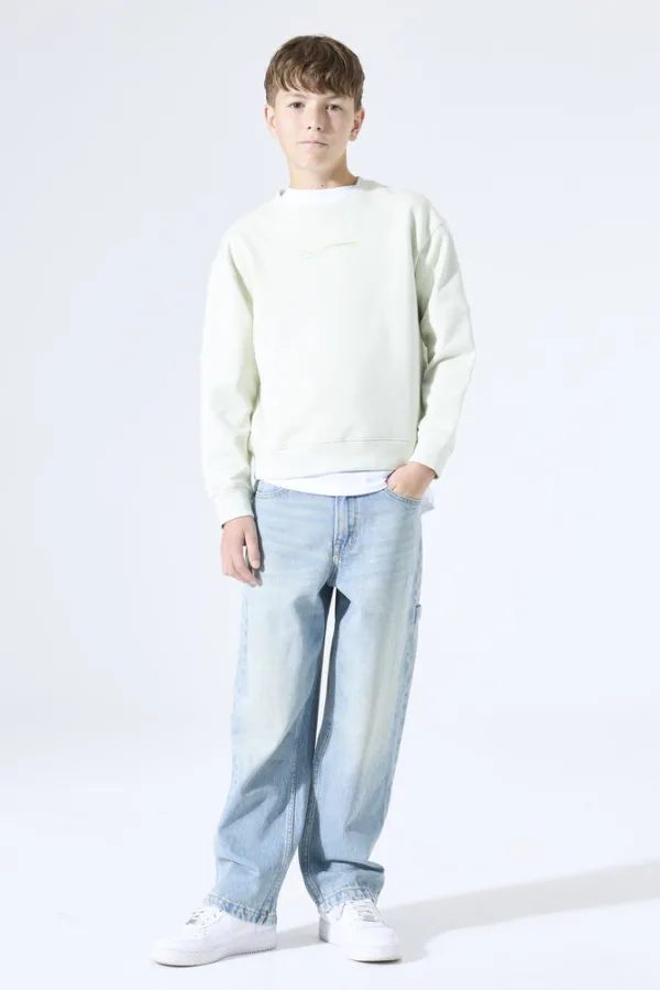 Jeans met een losvallende pasvorm. Deze jeans heeft een knoop- en ritssluiting met een verstelbare tailleband, een relaxed taille en een wide leg. Dit item is gemaakt van 80% katoen en 20% gerecycled katoen. Better Cotton is een initiatief dat zich wereldwijd inzet voor betere omstandigheden in de katoenindustrie. Hergebruik van materialen draagt bij aan een circulaire economie.