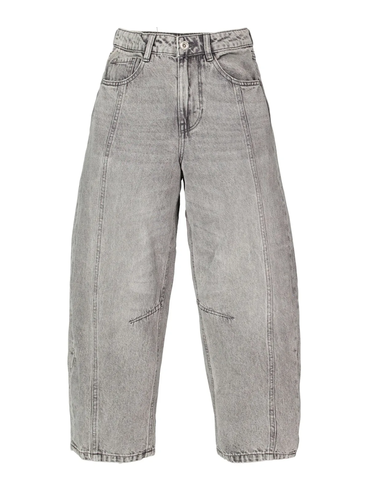Jeans met een losse pasvorm. Deze jeans heeft een medium taille, een knoop- en ritssluiting met verstelbare tailleband en een barrel leg. Dit item is gemaakt van 80% katoen en 20% gerecycled katoen. Better Cotton is een initiatief dat zich wereldwijd inzet voor betere omstandigheden in de katoenindustrie. Hergebruik van materialen draagt bij aan een circulaire economie.