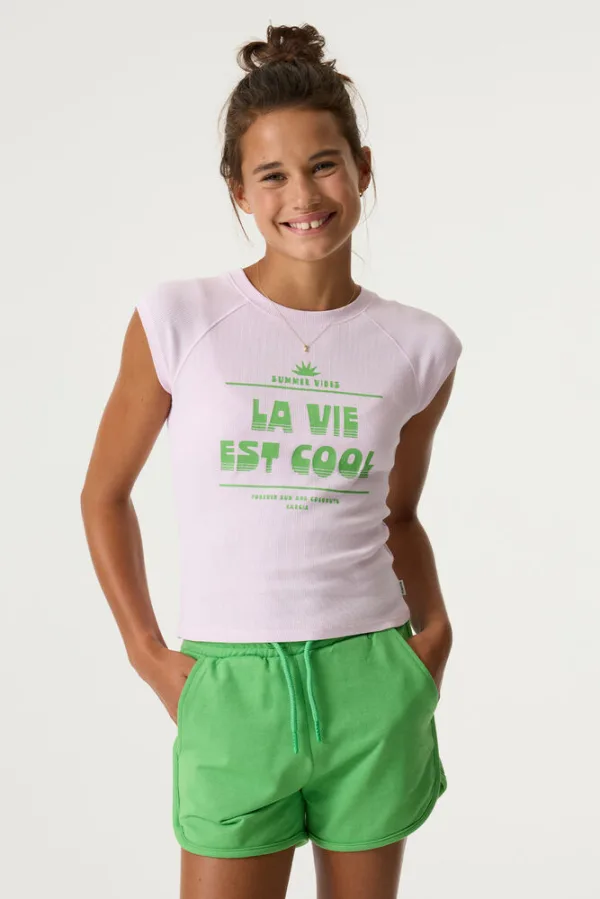 GARCIA Meisjes Tekst Print T-shirt Paars Korte mouw Prijzen